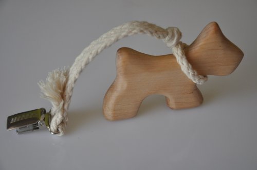PREMIUM QUALITY BABY WOODEN TEETHER is a natural product made from alder wood. Convenient for teething and grasping. Smoothly finished and soft touch. ALDER WOOD TEETHING. We use only alder wood for teethers. Do You know Why? ALDER wood is used in food industry and in medicine. The alder is extensively used for throat, gum and tooth problems and also to cure injuries. Natural alder wood has a very pleasant taste, so it encourages exploring it again and again in different places and in different variations. Besides alder wood doesn't have sharp grains. Our teethers don't cause an allergic reaction. Wood is always warm on touch. WHY WE USE ONLY HIGH TEMPERATURE TREATED WOOD? Is it possible to use green wood for unfinished toys? It means that our wood is not green wood or refurbished from old cabinet. All our teethers made from high temperature treated wood. What does it means for you? It means that wood is well dried and insects disinfected. So this wood can't contain insects and other live microorganisms like in green wood. The other side: dried wood can shrink from the water and return to the original size when dried. The green wood is always full of water and can't be dried by normal conditions like dried wood. That is why it can be very attractive to insects and other microorganisms. WHY IT'S PREMIUM QUALITY? We insist that natural and organic baby toy have to be without finishing except carefully made sanding and polishing. Varnish and paint hide all woodwork imperfections and wood quality. Even beeswax and oils can be allergic for your baby, besides they hide natural flavor of alder wood. So you taste not wood, but oil. Also oiled toys are faster get dirty: because oil dries very slow, it stays on a surface. Our product is hand carved and highly polished: no sharp edges or splinters. Handcrafted and limited quantity.Read more Dog Baby Teether with a Clip - Natural, Organic and Eco-friendly for Your Baby