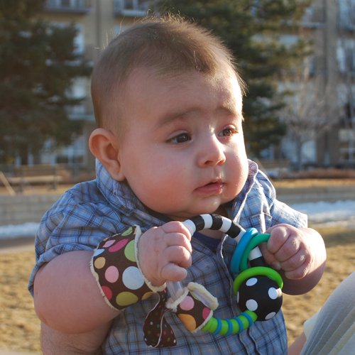 Review : Baby Rattle Holder - Brown Colored Dots Loopy