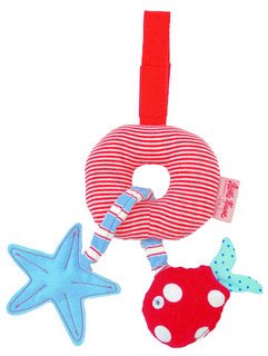 A Mobile attracts babies' curiosity and makes them want to grab for it. The mini mobile is ideal for using in the car or stroller. Thanks to a hook-and-loop fastener it can be easily attached to the car seat or stroller. The mini mobile is made of cotton fabrics, filled with polyester wool and makes funny jingling noises. Suitable for newborns. Machine wash at 30°C soft cycle. Size: 10 inches.