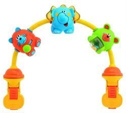 The Chicco Dancing Animals Stroller Toy is an activity centre for the stroller the child can activate fun melodies and entertaining sound effects by pressing the nose of the elephant. The woolen ball of the kitten unwinds and makes a fun noise the tummy of the mouse contains colourful pieces of cheese that move when the roller is turned. Easy to fix to the bumper bar of most strollers Adjustable securing straps Develops manual co-ordination skills Develops musical skills Suitable from 6m
