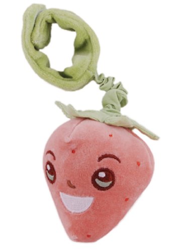 This special organic cotton Strawberry Stroller Toy will delight your child. Its silly face will smile down from the stroller, car seat, or where ever you fasten it. Comes with a rattle inside for extra fun.