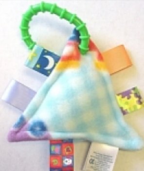 "Taggies Take Along Taggie developed by an educator and mother of 3, is a handmade, machine washable fleece security blanket with a twist, or should we say, ""tag""? The Taggies Take-A-Long Taggie is a teether, soft squeaky toy and ""Taggie"" that attaches easily to joggers,strollers and car seats. Ages birth and up. "