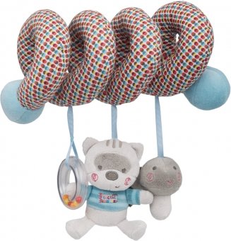 Original and luxurious plush spiral baby toy with 3 soft rattle toys. Curl it around the crib, stroller or carrier to keep baby busy and happy! Especially designed by Tuc Tuc to help your baby learn and develop baby's tactile senses and hand eye coordination naturally. Made of high-quality materials with a classic pleasant rattle sound. 80% soft cotton velour. Measures 12" long. 31cm long. Imported from Europe. Matching accessories also available from this sweet Magic Forest Collection.