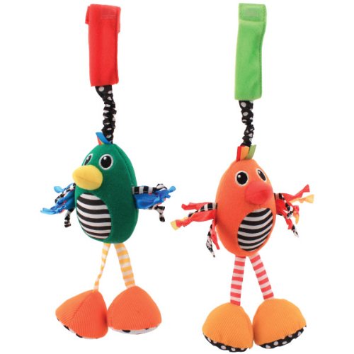 Sassy chime birds is a developmental toy with bright bold colors and textures to inspire vision and hearing. The birds chime along as they swing on a carrier or stroller. Symmetrical and smiling faces keep baby enjoying fun as they go. The attachables secure with easy attach loops. Oppenheim winner. Includes 2 birds. For newborns 0 plus months.Read more Sassy 2 Count Stroller/Car Seat Toy, Chime Birds